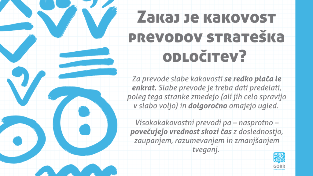 Visokokakovostni prevodi pa – nasprotno – povečujejo vrednost skozi čas z doslednostjo, zaupanjem, razumevanjem in zmanjšanjem tveganj.